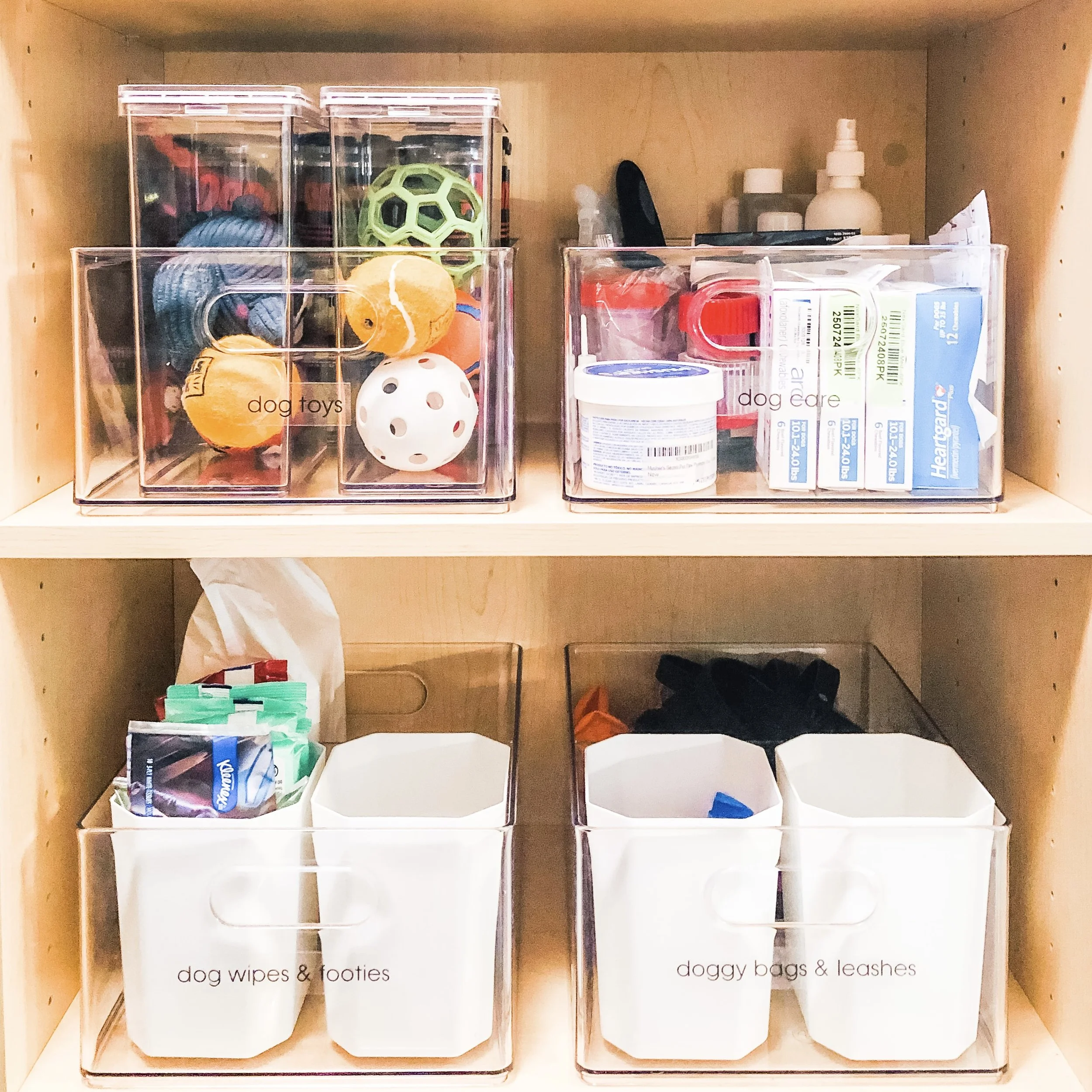 Elfa over-the-door organizer systems are one of THE BEST ways to efficiently use the existing and otherwise overlooked spaces in your home. These systems are highly customizable and can be used for anything from sunscreen to pet supplies. They’re fantastic for creating a grab-and-go zone for you to stop by before leaving for your next activity.
